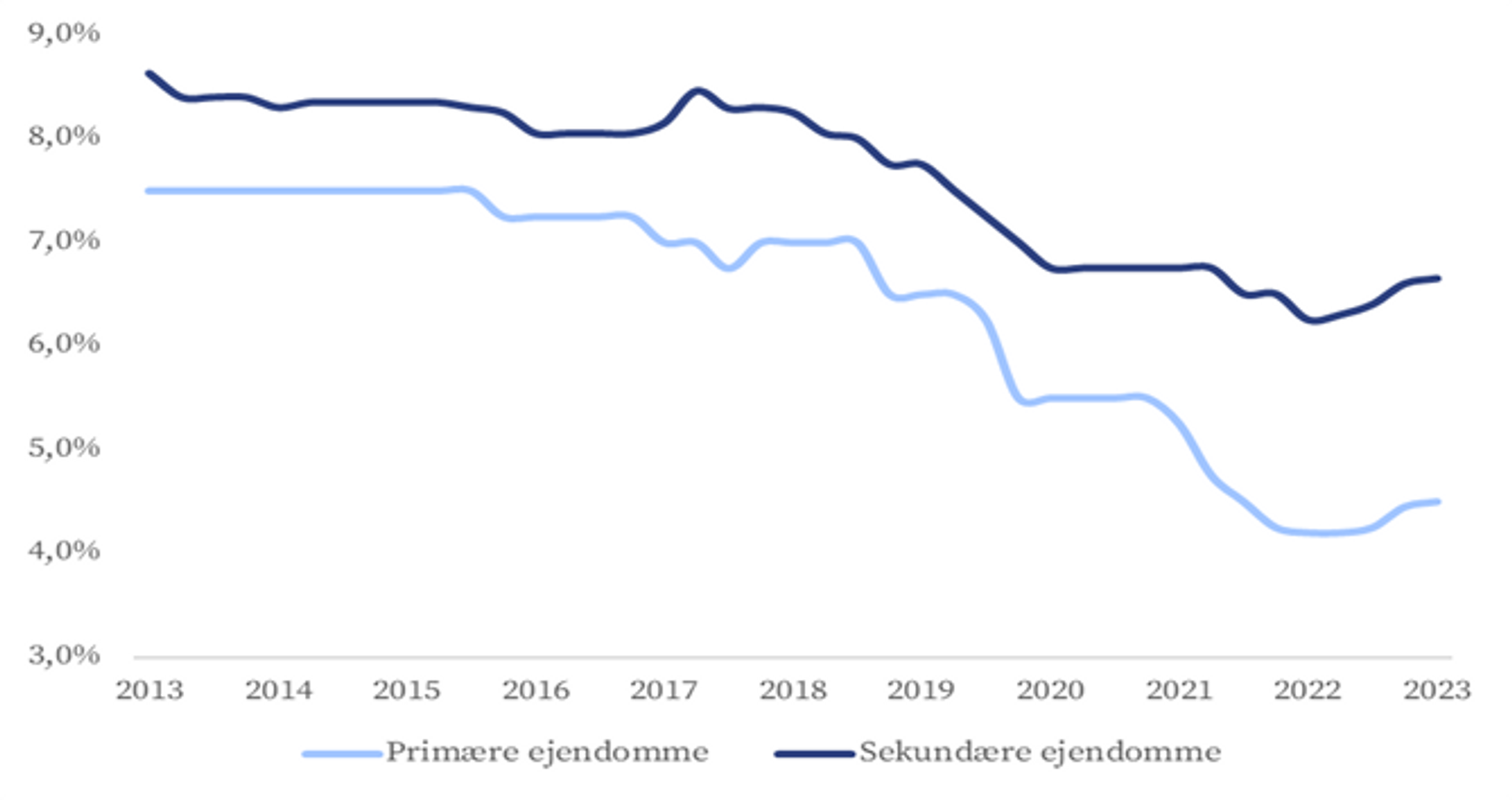 Afkast på logistikejendomme i København 2012-2023 (pct.)