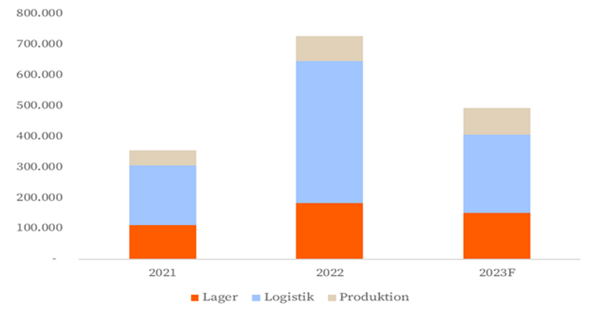 Den kraftige økonomiske vækst i 2021 og 2022 medførte en stor efterspørgsel efter industriejendomme, der nød godt af fremgang i produktion, handel og transport.
