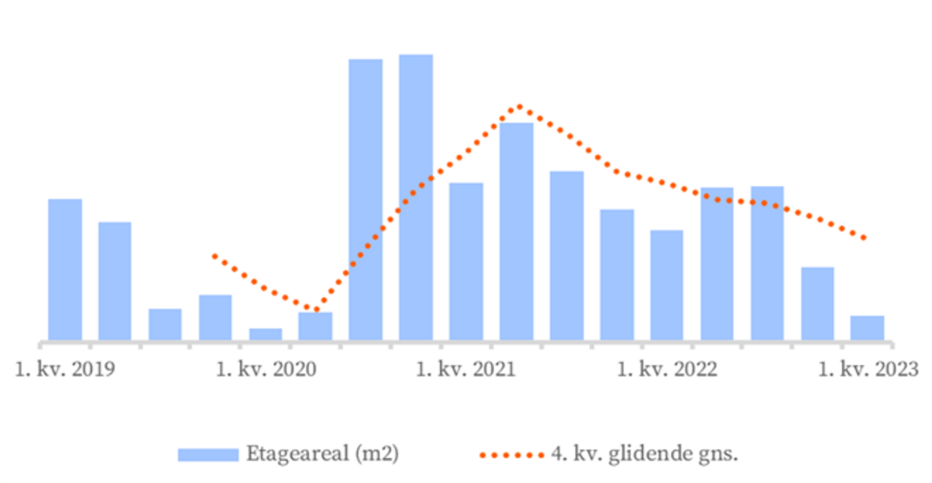 Kilde: Newsec, Ejendomstorvet. Indikator er baseret på areal for udlejninger, som Newsec er bekendt med.