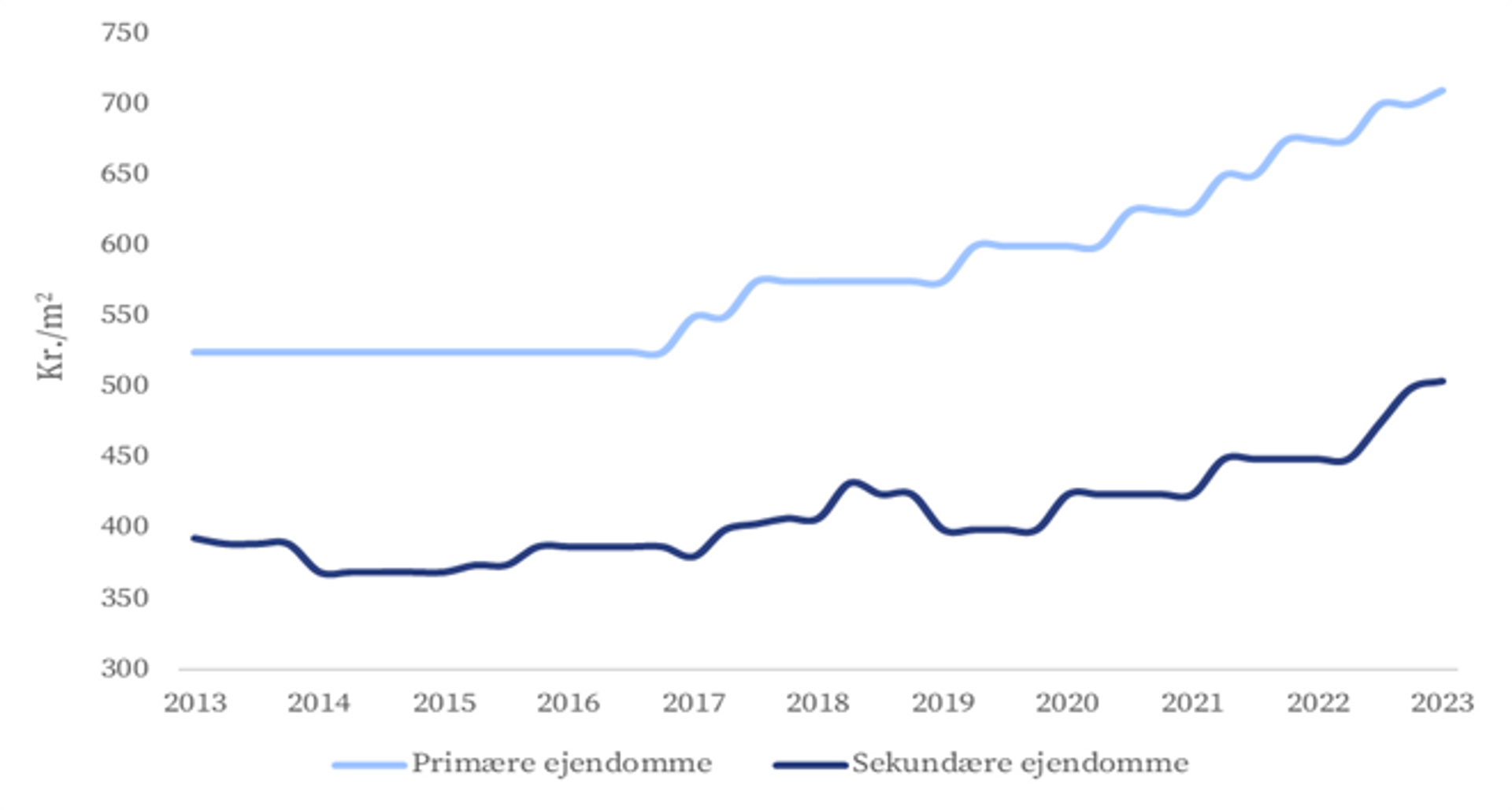 Leje for logistikejendomme i København 2012-2023 (kr./m2)