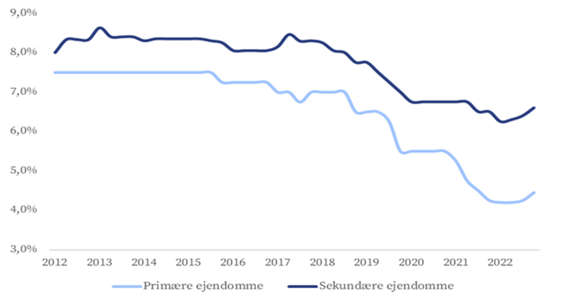 Afkast – Afkastet på industriejendomme har været faldende i en årrække. Den tendens ophørte i 2022, og der har været en generel stigning i afkastniveauet siden foråret. Det er Newsec’s vurdering, at stigningen har været størst for tertiære ejendomme (ejendomme med en kvalitet og beliggenhed under standard og med betydelig udlejningsrisiko). For denne type ejendomme er afkastet steget 0,4-0,5 procentpoint. For sekundære ejendomme er afkastet 0,2-0,3 procentpoint højere, mens stigningen har været mindst for primære ejendomme – omkring 0,05-0,20 procentpoint.