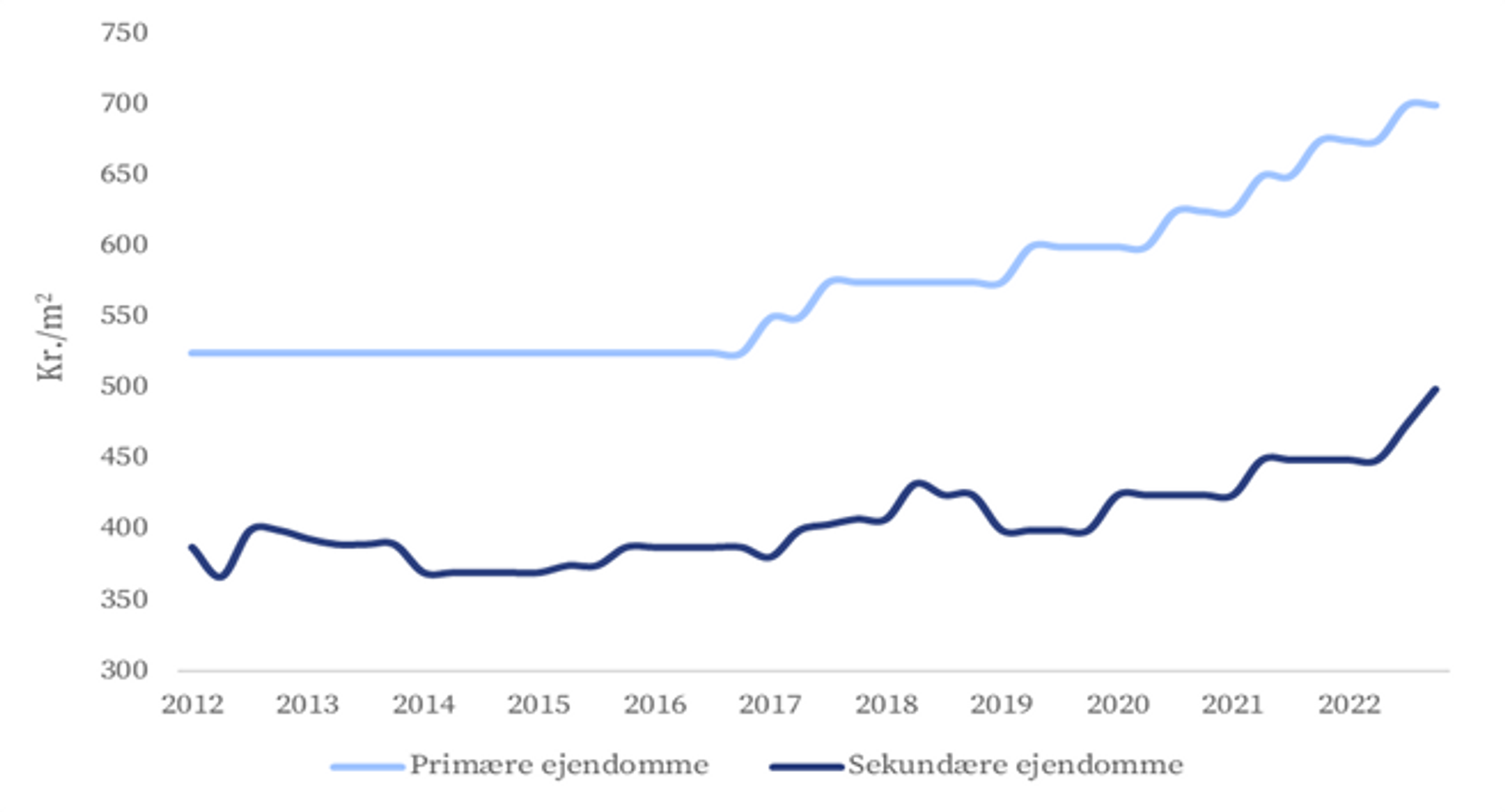 Leje for logistikejendomme i København 2012-2022 (kr./m2)