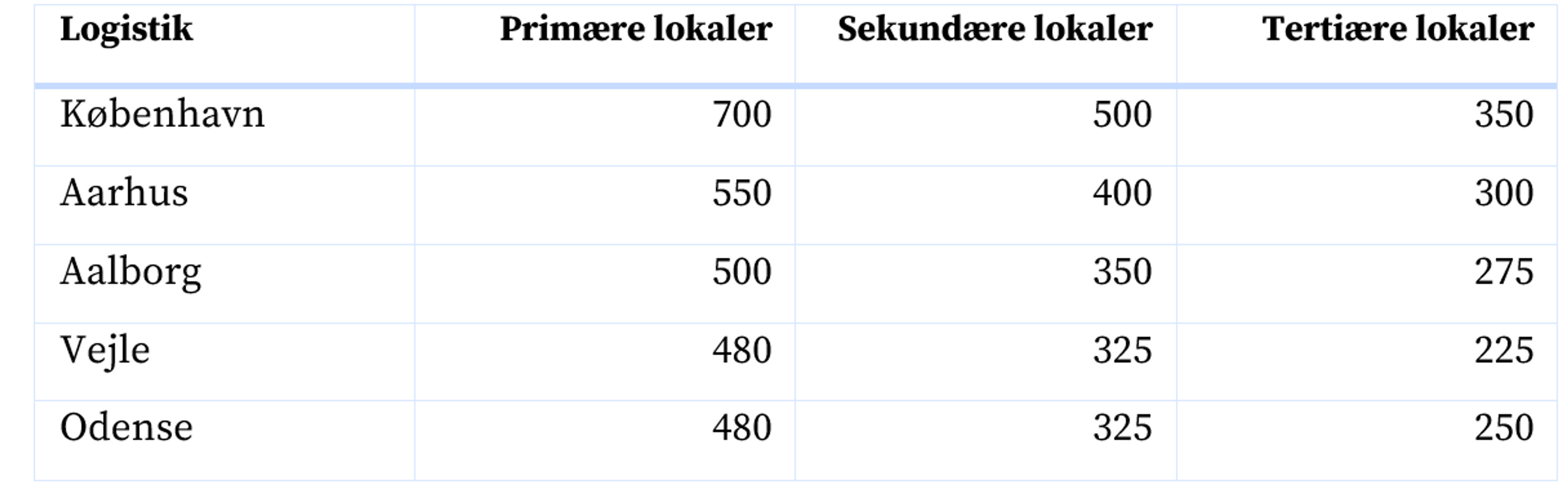 Lejen for primære logistikejendomme i Aarhus lå på omkring 550 kr. pr. m2 og på 480-500 kr. pr. m2 for de bedste ejendomme i de øvrige store provinsbyer.