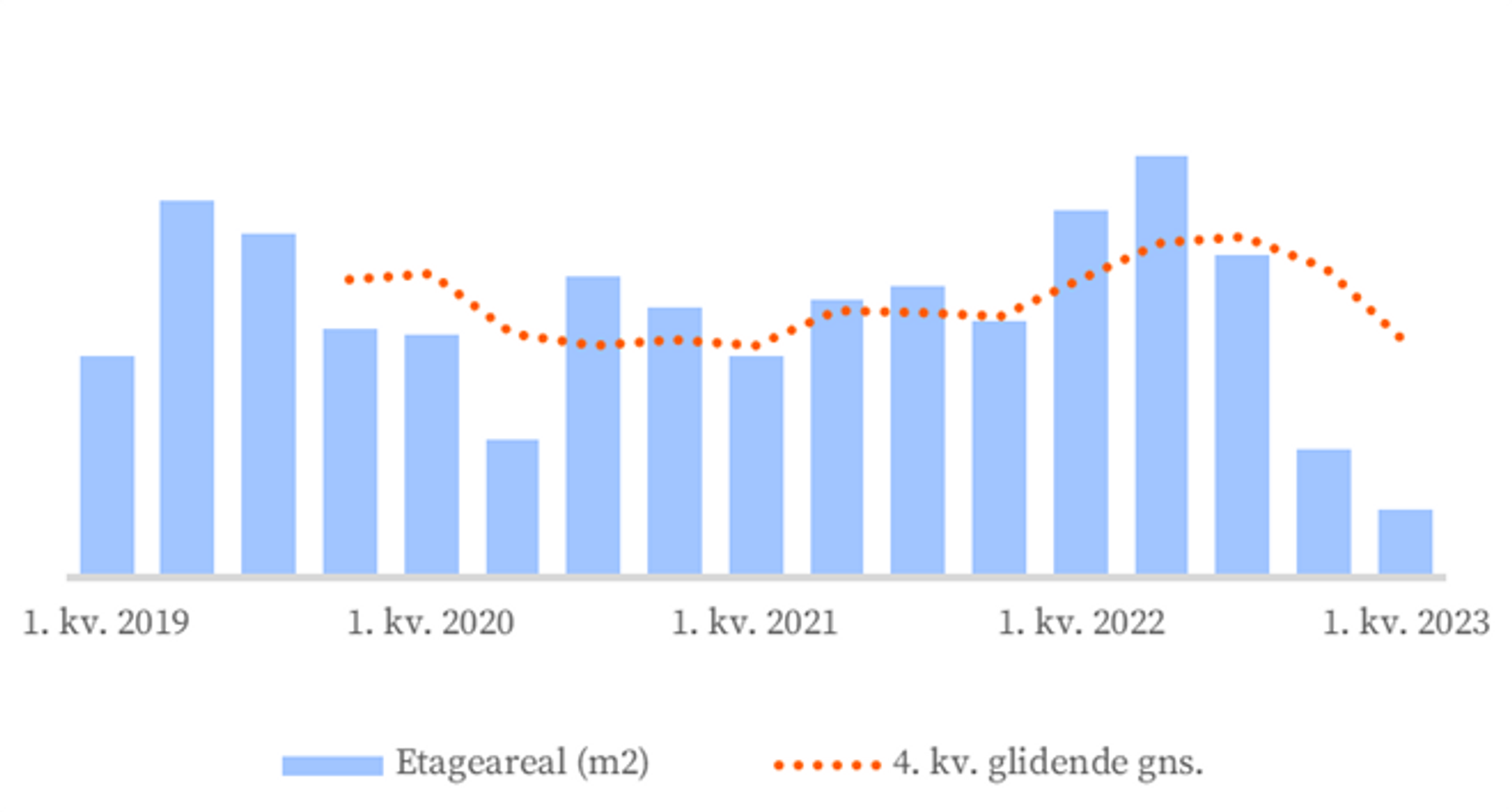 Foreløbige tal for 1. kv. 2023.