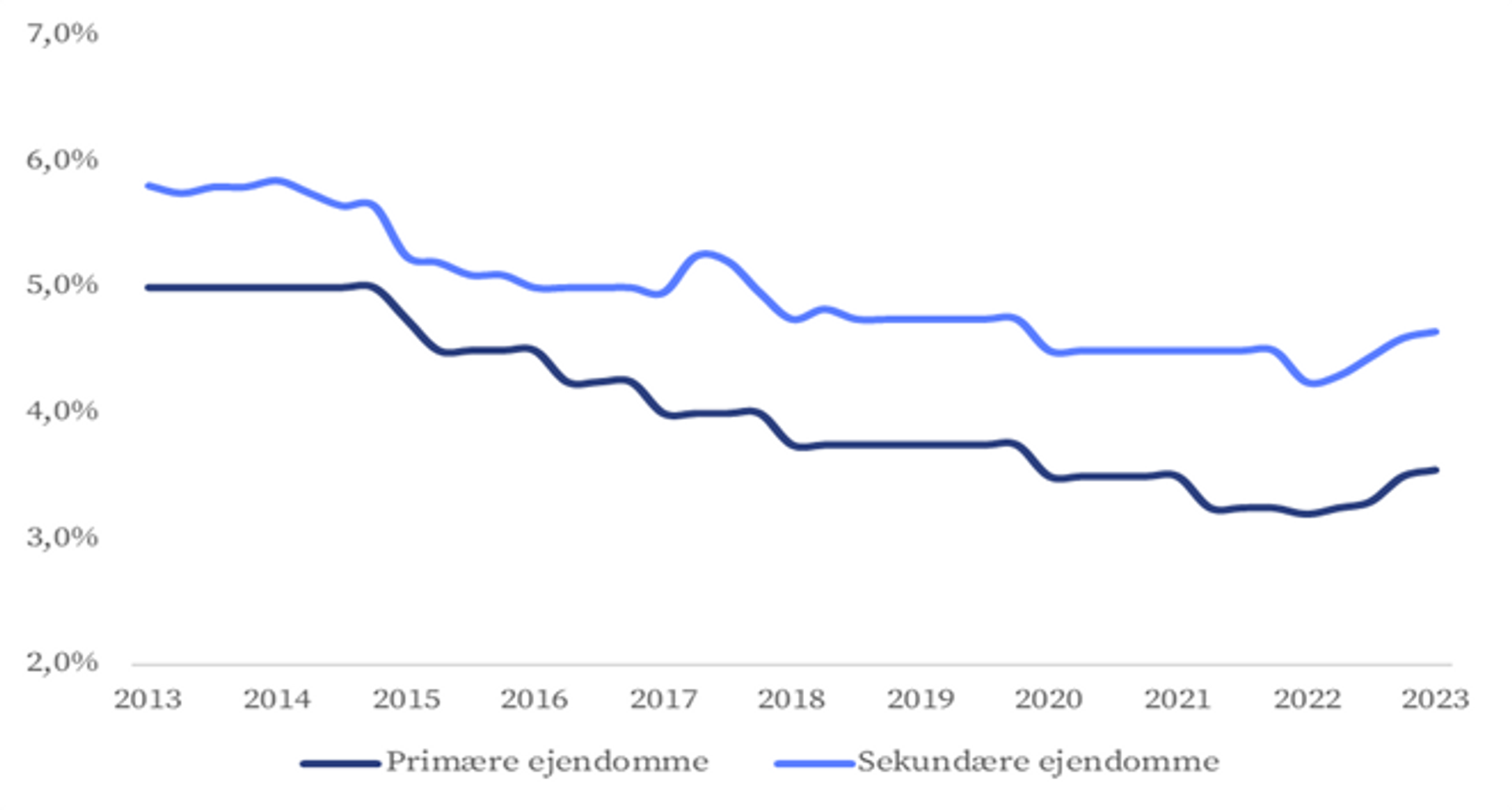 Afkast på kontorejendomme i København 2012-2023 (pct.)