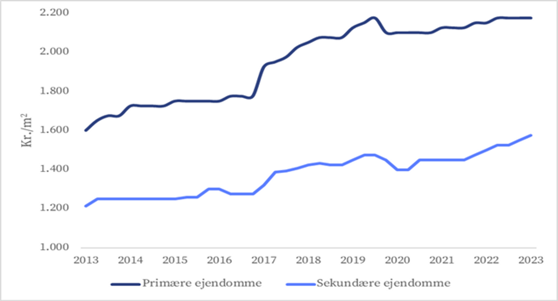 Kontorleje i København 2012-2023 (kr./m2)