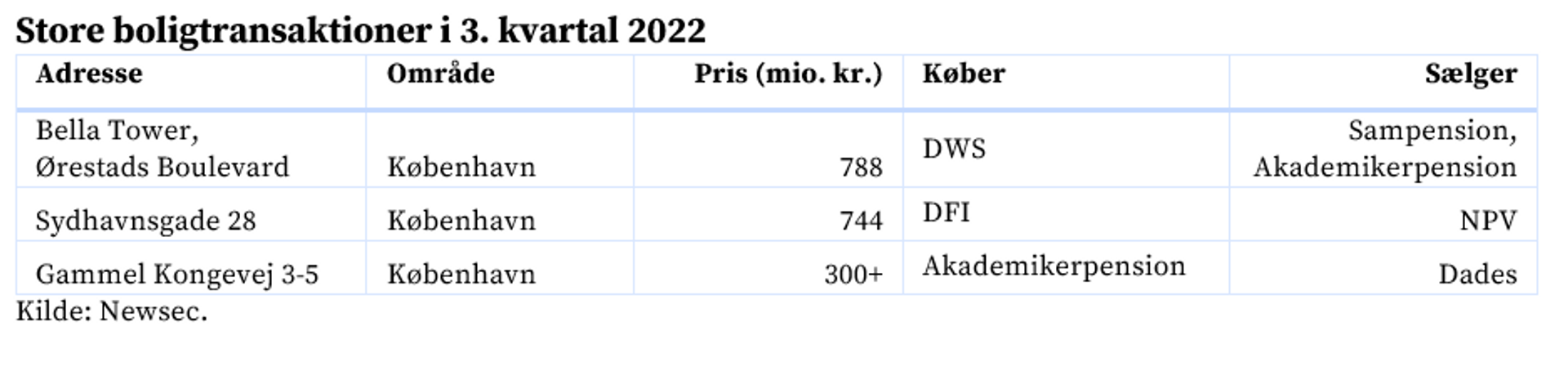 Investorerne har øget deres fokus på københavnsområdet, der normalt tiltrækker mellem 30 og 60 pct. af de samlede boliginvesteringer i Danmark, men i 2022 stod for til 61 pct. I både 2. og 3. kvartal var andelen over 80 pct.