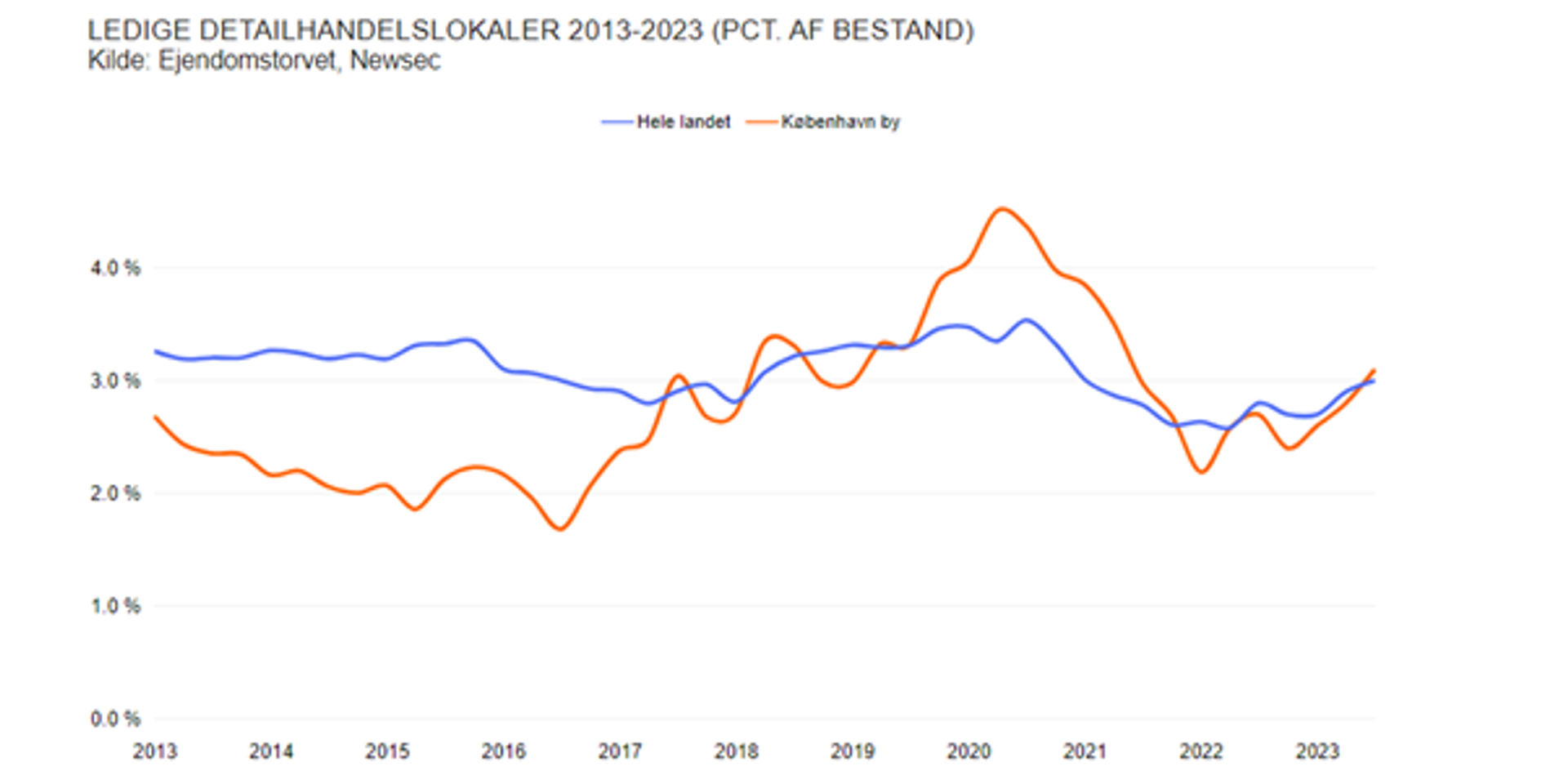 Flere ledige detailhandelslokaler i København i 2022.