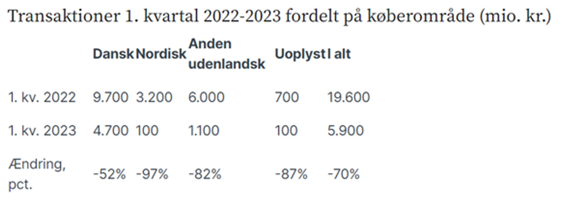 Transaktioner 1. kvartal 2022-2023 fordelt på køberområde (mio. kr.)
