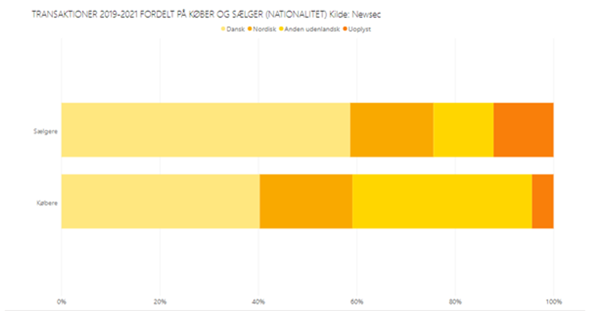 Det var i overvejende grad danske ejere, der solgte ejendomme. I 2021 stod danske ejere for 67 pct. af ejendomssalget. I 2020 var andelen 69 pct.