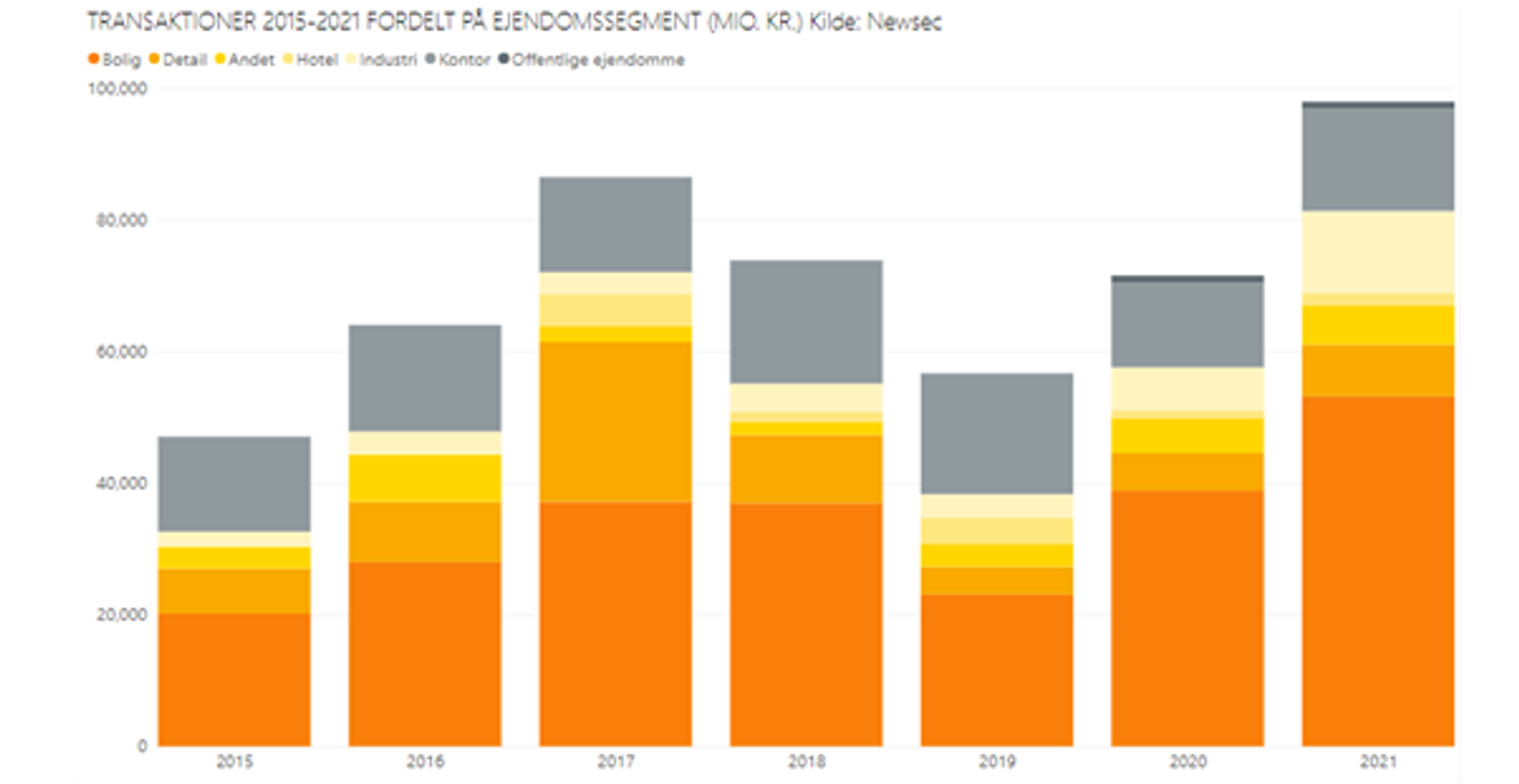 Handlen med detailejendomme gik også frem, og endte på 7,9 mia. kr., hvilket var 38 pct. højere end 2020.