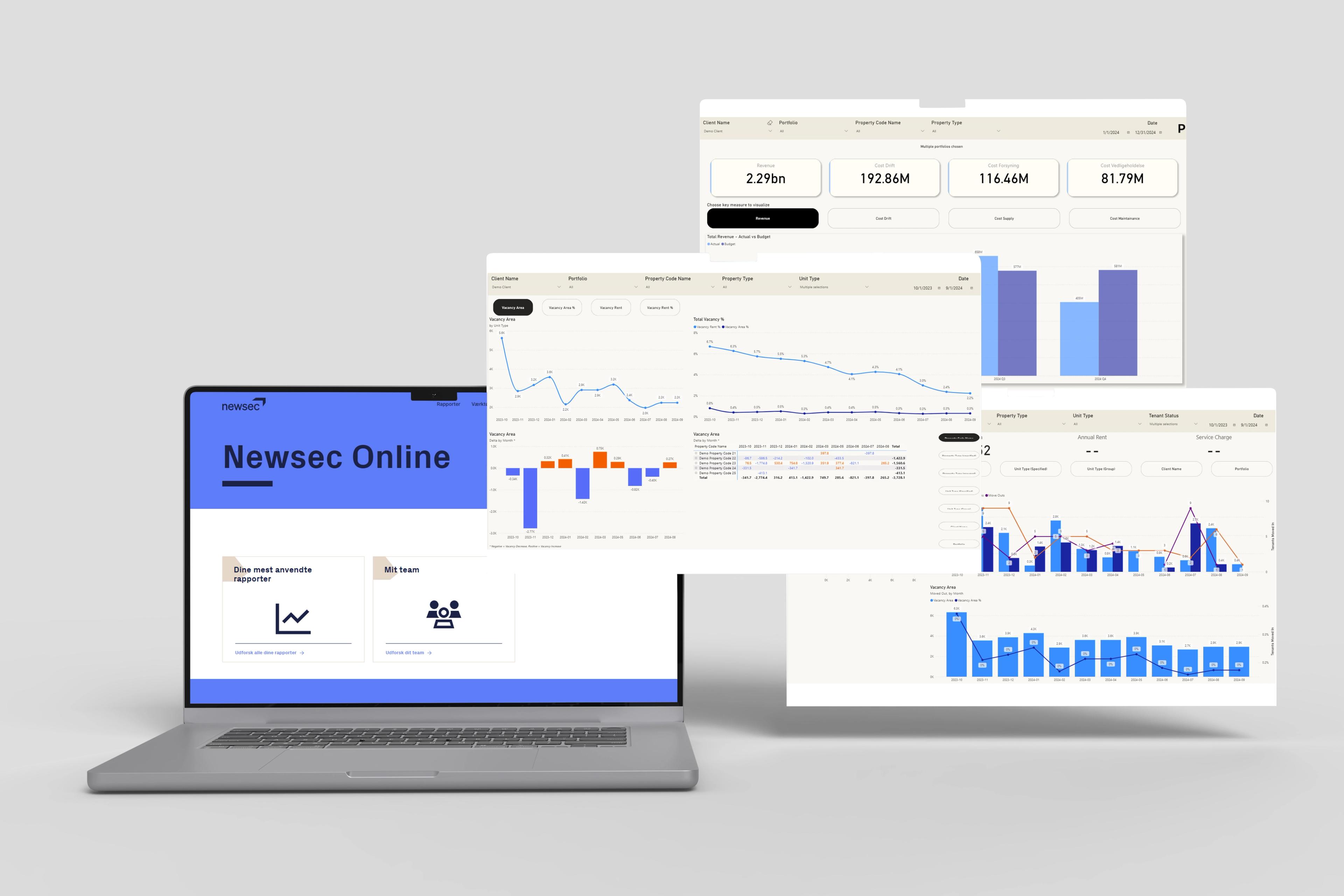 Newsec Online giver dig som kunde et samlet overblik over din ejendomsportefølje, så du nemt kan analysere data og træffe informerede beslutninger. Platformen kombinerer fleksibilitet, realtidsdata og dybdegående analyser for at hjælpe dig med at gå fra indsigt til handling.